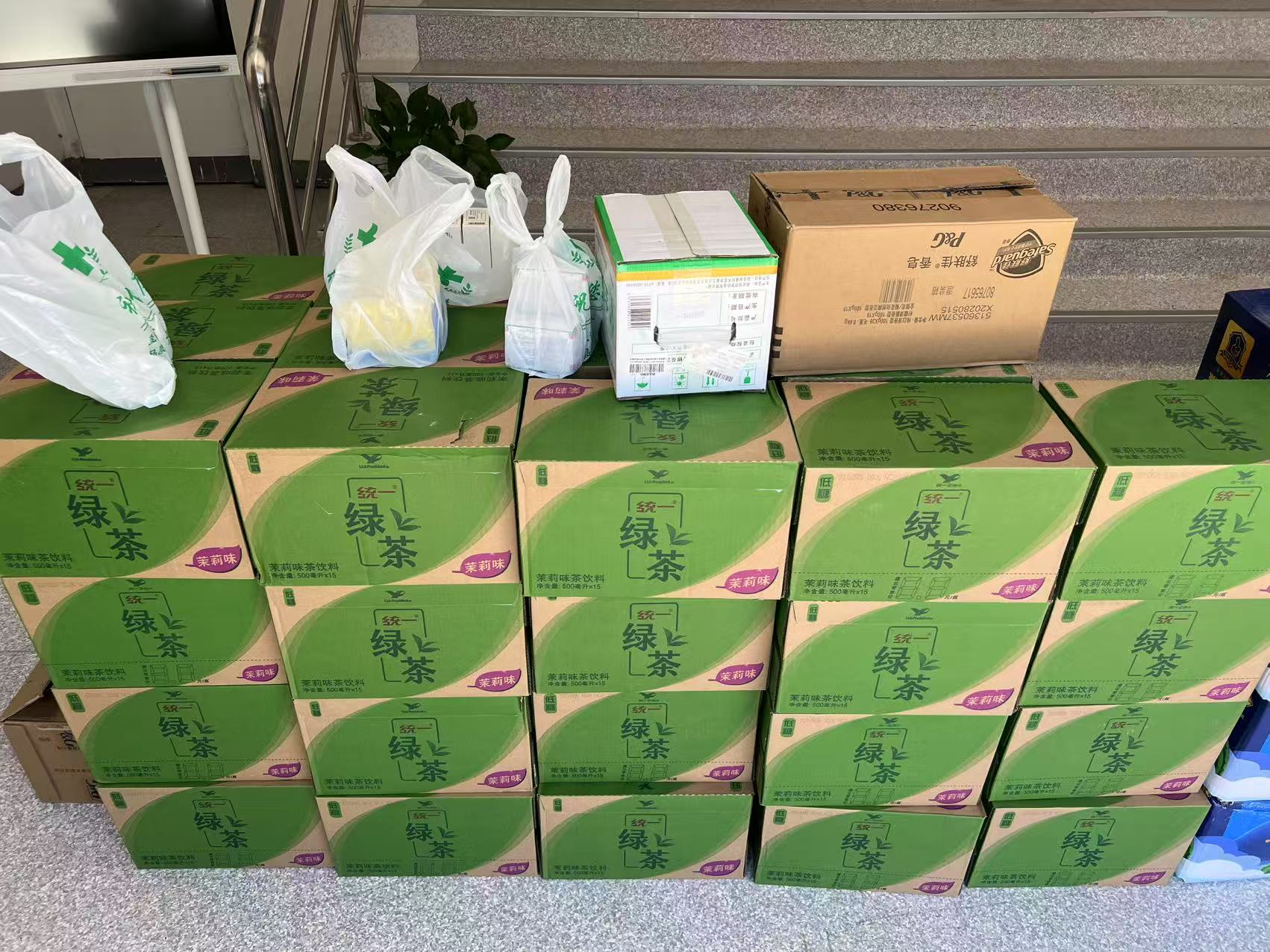 這份 “降溫大禮包” 可真是貼心又實用,里面有清熱解暑的綠茶飲品,一口下去,瞬間驅散了工作帶來的疲憊;還有新鮮多汁的西瓜,是夏日里最受歡迎的美味;舒膚佳香皂能幫助職工們在忙碌工作后清潔肌膚,帶來潔凈舒適的體驗;而金銀花則具有清熱解毒的功效,讓大家在夏日里多一份健康保障。